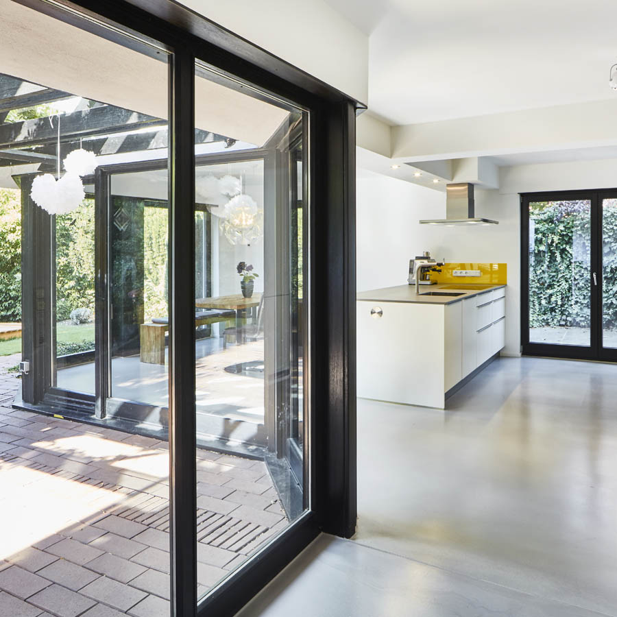 Durch das Entfernen der raumaufteilenden Wände erhält das Wohnhaus eine neue Raumwirkung und bringt den Bewohnern eine besondere Großzügigkeit der Räume und die Integration zum Garten näher.