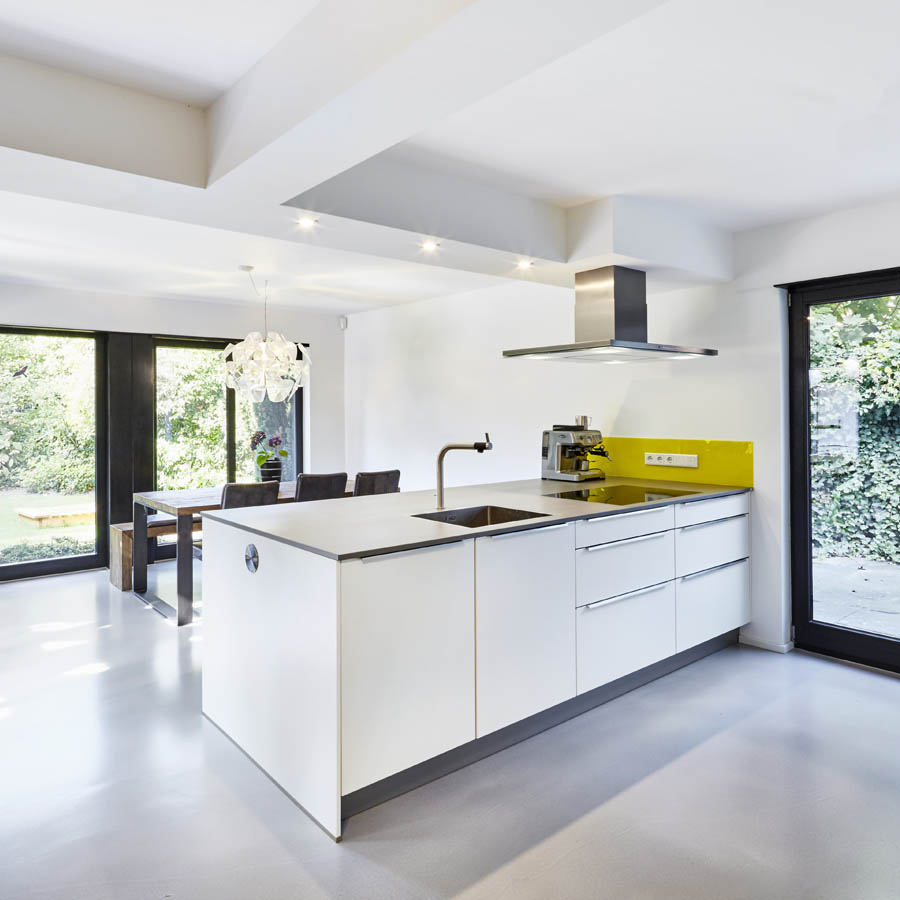 Der durchgängige und beheizte Betonfußboden steigert die Großzügigkeit des Raumeindruckes und sorgt gleichzeitig für mehr Behaglichkeit.